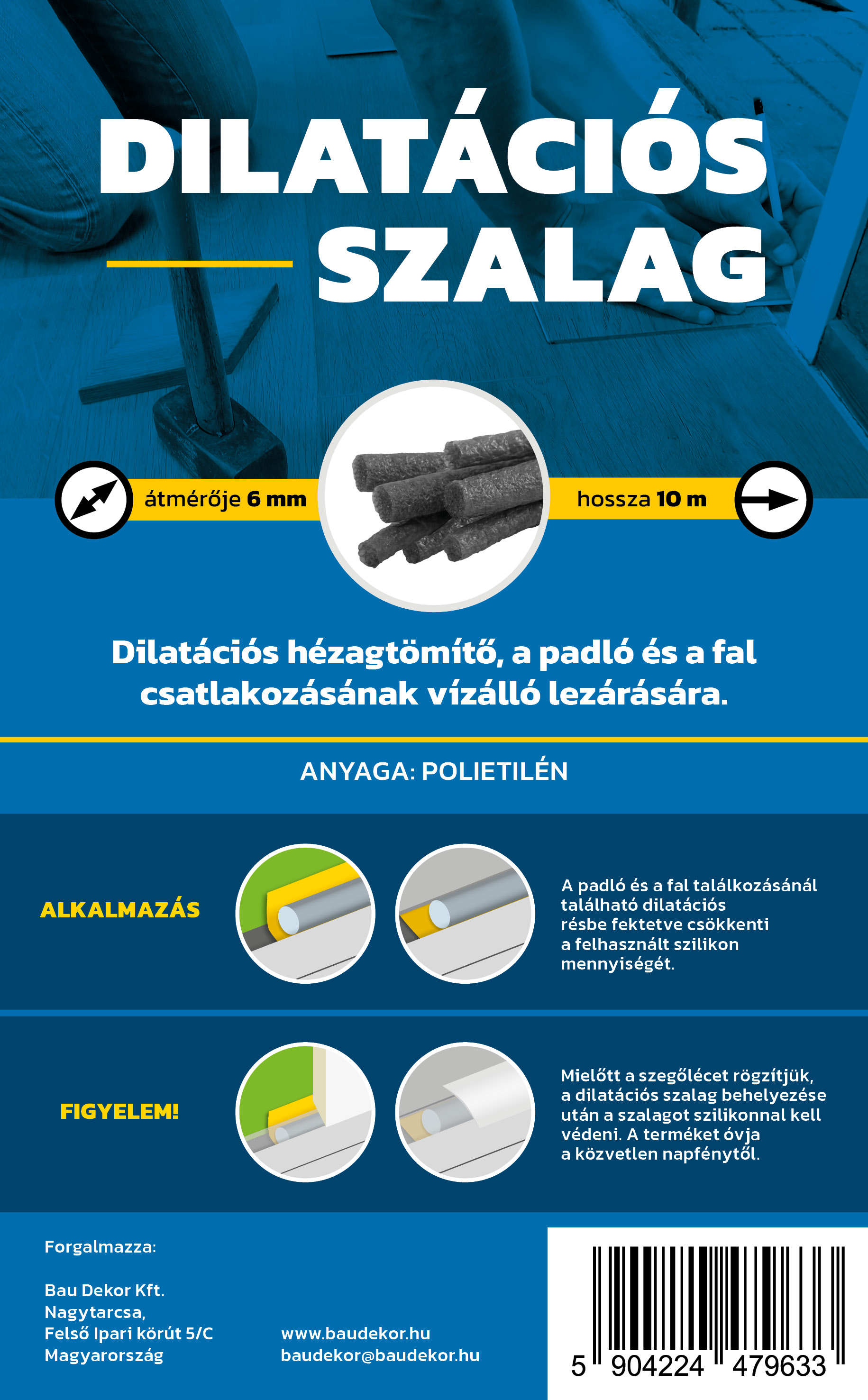 Csökkentsük a felhasznált szilikon mennyiségét a dilatációs rés kitöltésével a hézagtömítő által. Kis mennyiségű szilikon szükséges a padló felső szélének lezárásához.